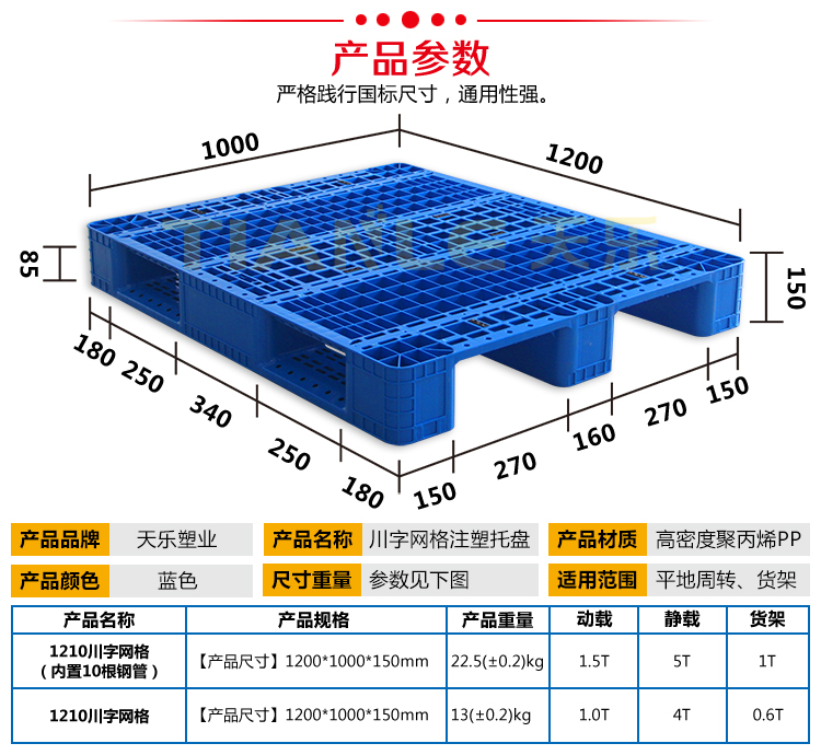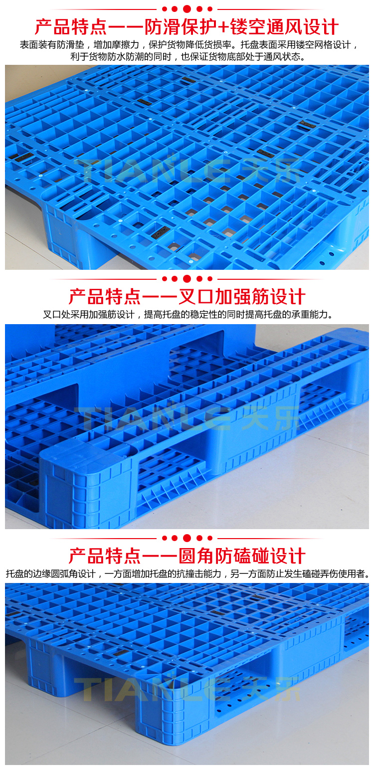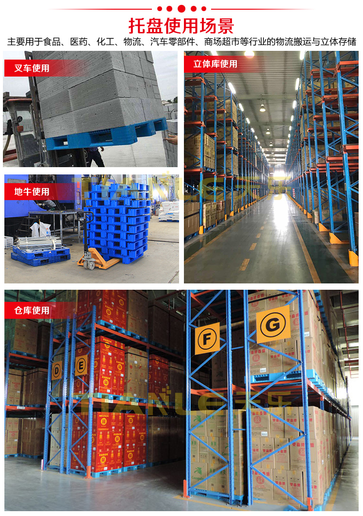 山東天樂塑料科技有限公司,主要生產塑料托盤,塑料周轉筐,塑料垃圾桶,銷售木包裝箱木托盤,膠合板托盤,產品使用于汽車、食品、醫藥、造紙、印刷、電子、電器、化工、紡織、服裝、倉儲物流、環衛等行業。產品多規格全價格實惠,大廠家售后保障體系完善。產品品種,以載重量分類,包括:一次 使用的特輕型、輕型、標準型、貨架加重型等適用范圍:食品醫藥化工紡織汽配廠等行業倉儲物流運輸用